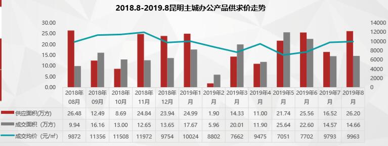 8月辦公供應26.20萬方,環比上漲58.63%,同比回落1.06%,辦公市場供應持續放量;