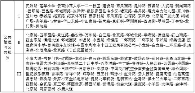 昆明主城規(guī)劃區(qū)(呈貢區(qū)、五華區(qū)、盤龍區(qū)、官渡區(qū)、西山區(qū))、三個開發(fā)區(qū)(滇池旅游度假區(qū)、高新技術(shù)產(chǎn)業(yè)開發(fā)區(qū)、經(jīng)濟技術(shù)開發(fā)區(qū))及空港經(jīng)濟區(qū)范圍內(nèi)的商服用地劃分為7個級別,住宅用地劃分為7個級別,工業(yè)用地劃分為5個級別;公共管理與公共服務(wù)用地劃分為7個級別。見表1、表2。