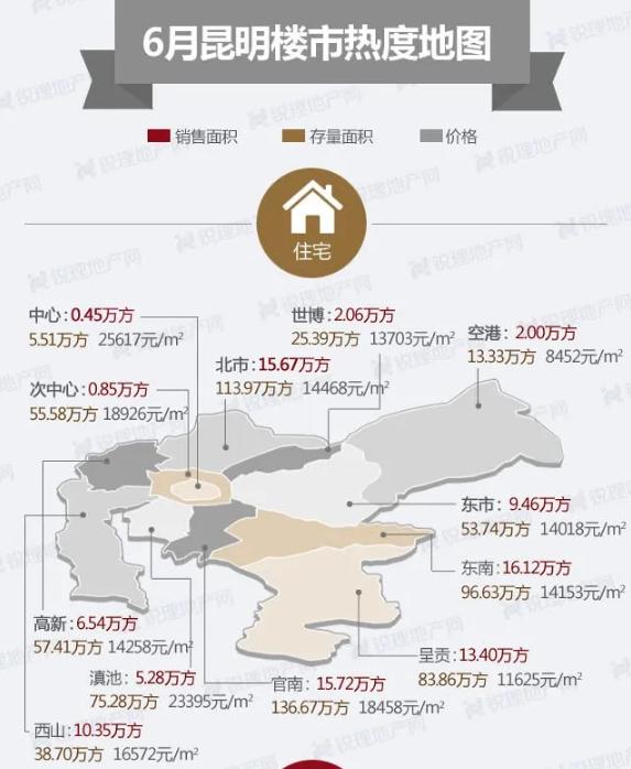 數據顯示,2020年6月昆明商品房(包括昆明主城的新建住宅、商業和辦公物業,住宅不含團購房)成交了10967套,成交面積為113.76萬平米,成交金額為168.11億元,3項數據的漲幅均為13%;成交均價為14778元/平米,環比持平,形勢繼續向好。