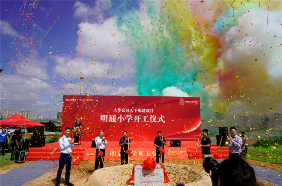 據悉2020年6月,云南亞德房地產開發有限公司與盤龍區政府、教育局及明通小學正式簽訂合作協議,明通小學入駐大華·公園天下項目7號地塊。明通小學開工儀式于2020年7月24日上午,在項目7號地塊隆重舉行。大華集團云南區域亞德公司總經理韓冬青先生等相關領導親臨開工儀式現場并發表講話。昆明多家媒體出席了此次盛會,共同見證昆明東區教育發展的嶄新篇章,更為昆明樓市再添里程碑時刻。