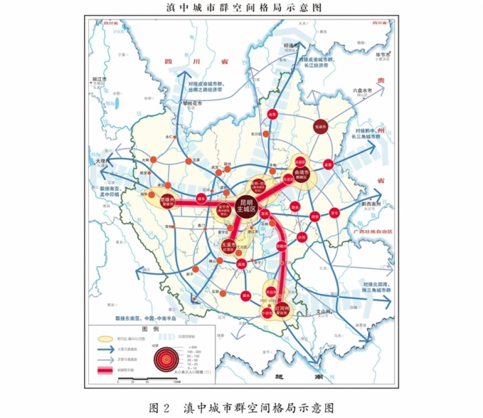 培育和發展滇中城市群,必須主動服務和融入國家發展戰略,遵循城市群發展規律,明確功能定位與發展目標,發揮優勢、補齊短板、強化協同,建設中國面向南亞東南亞開放的門戶城市群。