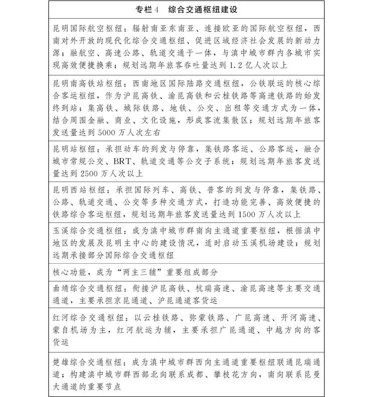 ——增強昆明輻射帶動能力。提升高端綜合服務功能,建設綜合交通樞紐,培育現代工業體系,建設成為面向南亞東南亞的區域性中心城市。積極謀劃培育昆明都市圈。
