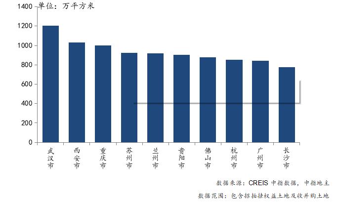 圖:2020年1-11月50家代表房企拿地面積TOP10城市