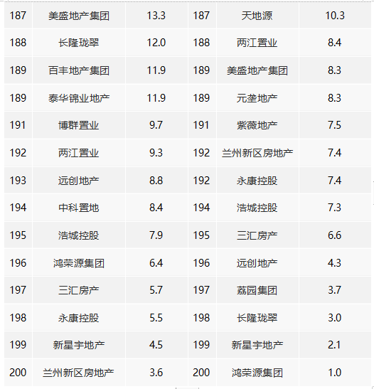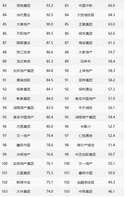 1、5家房企超千億,TOP100房企銷售額均值為307.8億元。
