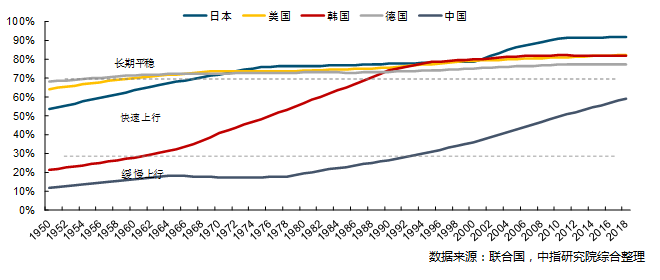 圖:我國常住人口城鎮化率變化及城鎮化“諾瑟姆曲線”示意圖