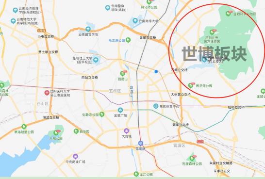 從昆明地圖上可以看出,世博片區擁有全城最大的一片綠色,世博園、金殿、野生動物園、呼馬山公園、曇華寺公園、各種綠地填滿了世博片區的大小角落。