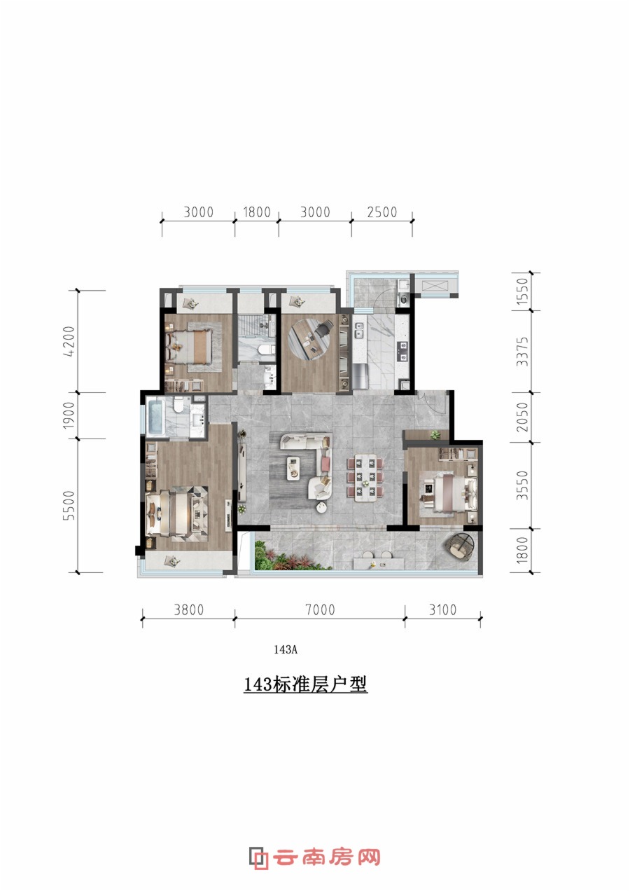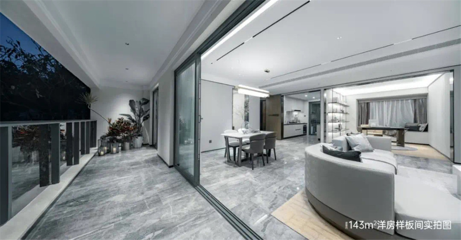 以143平米戶型為例,10米大陽臺(tái)是亮點(diǎn),雙面采光,房間呈“四葉草”布局,保證私密性,而且避免了空間浪費(fèi),四個(gè)房間也同時(shí)能滿足三代同堂或多口之家的居住需求;入戶處玄關(guān)設(shè)計(jì),不僅將室內(nèi)外空間做個(gè)過渡,同時(shí)可作為鞋柜等收納空間;一字型廚房雙面操作臺(tái),可同時(shí)容納兩個(gè)人,廚房外連生活陽臺(tái),這里既可以通風(fēng)散氣,避免油煙過大,還能放置洗衣機(jī)、晾曬衣物等。