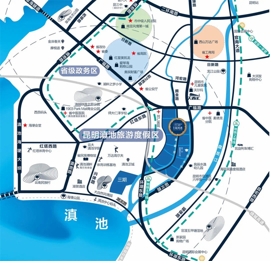 項目緊鄰500里滇池,周邊多個濕地公園環繞,占據昆明優越城市生態資源與景觀資源,依托地塊獨有1.9KM雙河自然河流資源,以建造“自然、生態、運動、休閑的私家濱河公園”為目標理念,打造城市中央生態居住區濱河國際生態生活社區。