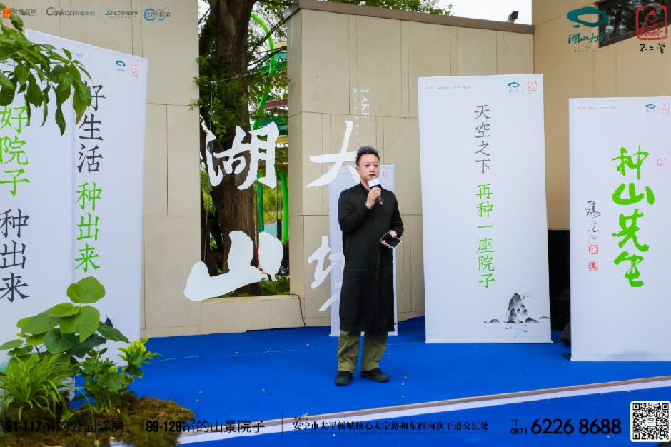 同時,現場選取了其中一間樣板間,以馮唐小院為主題進行布置,從每一處場地設計、每一處陳列擺放中,都透露出湖山院居生活更深層次的精神表達。