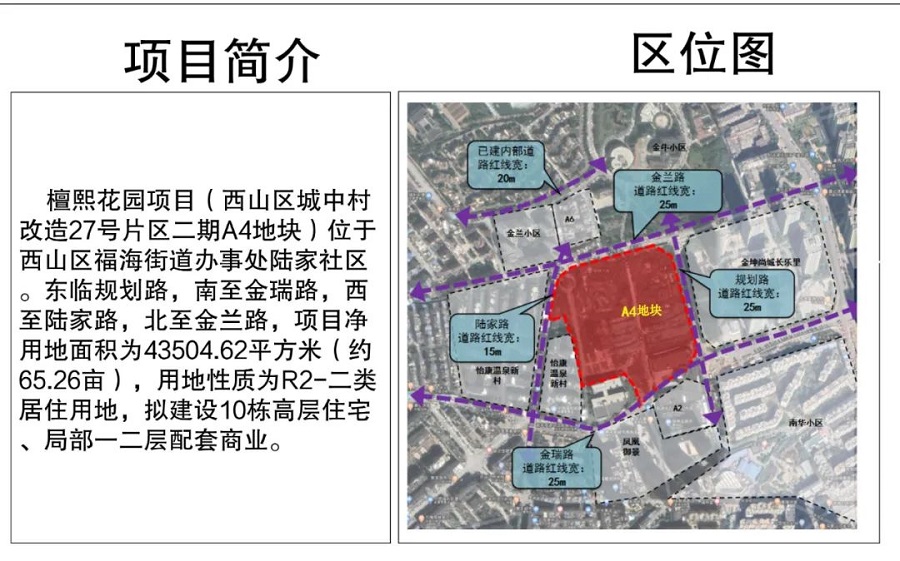 項(xiàng)目名稱:檀熙花園(西山區(qū)城中村改造27號片區(qū)二期A4地塊)