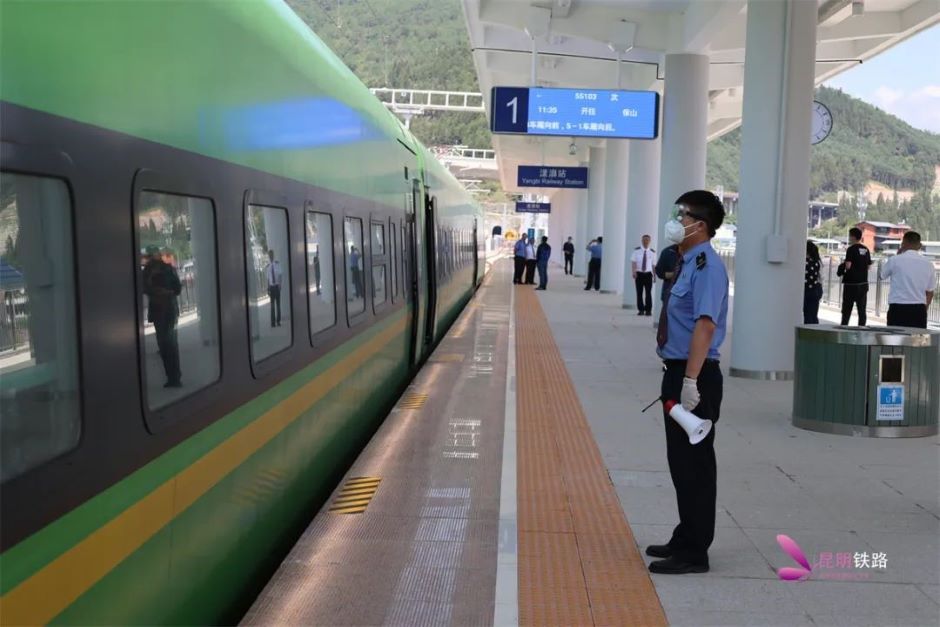大保鐵路首趟實驗動車組發(fā)車(圖源:昆明鐵路)