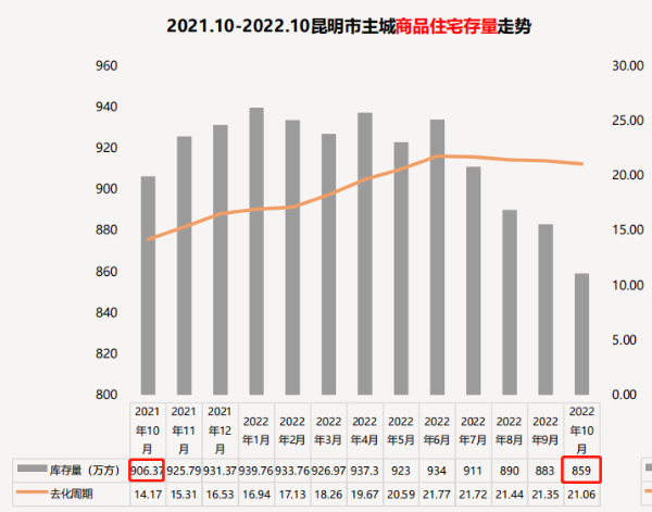 受此影響下,主城10月住宅庫(kù)存面積降至859萬(wàn)方,為近1年最低點(diǎn)。相比去年同期減少47萬(wàn)方,與年初最高點(diǎn)位(今年1月)時(shí)減少近81萬(wàn)方。盡管存量去化在加快,但按當(dāng)前銷售速度,市場(chǎng)整體去化周期仍然高達(dá)21.06個(gè)月。