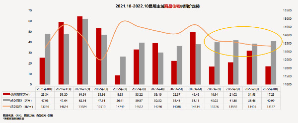 其中,住宅物業(yè)10月成交均價(jià)為13337元/平,僅比9月下降68元,比去年同期甚至還高出101元。
