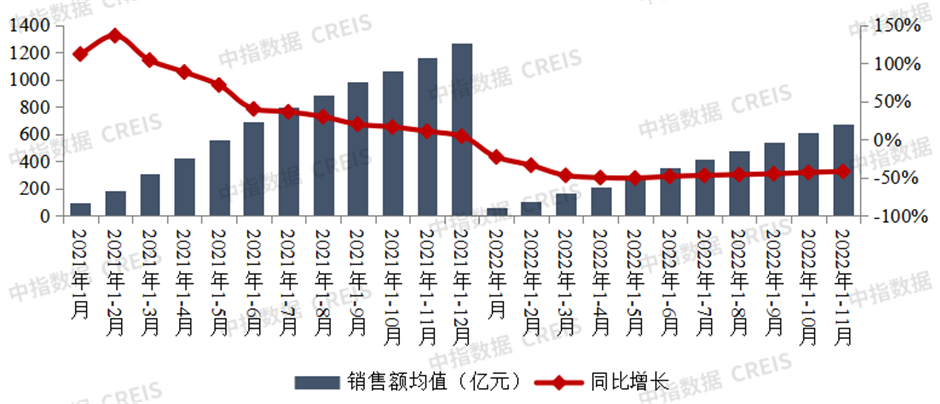 特別聲明:房地產企業權益銷售數據統計是以2022年1月1日-11月30日期間銷售的商品房為統計口徑,主要依據CREIS中指數據在各地的銷售監測數據,并參考當期總體經營情況和推盤去化情況進行分析統計;對于少數沒有在監測范圍內的城市或項目,由企業提供相關證明文件,經課題組對數據進行嚴格審核,也納入統計范圍。本報告僅供參考,課題組不對使用報告及其內容所引發的任何直接或間接損失承擔責任。