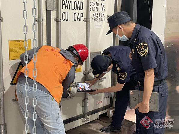 勐臘海關嚴格落實監管要求,在磨憨鐵路口岸綜合性指定監管場地周邊開展國門生物安全監測,動態監測并處置實蠅等檢疫性有害生物,重點檢查進口水果的包裝、有害生物、標簽標識、夾藏夾雜、農藥殘留等情況,保障國門生物安全和食品安全。