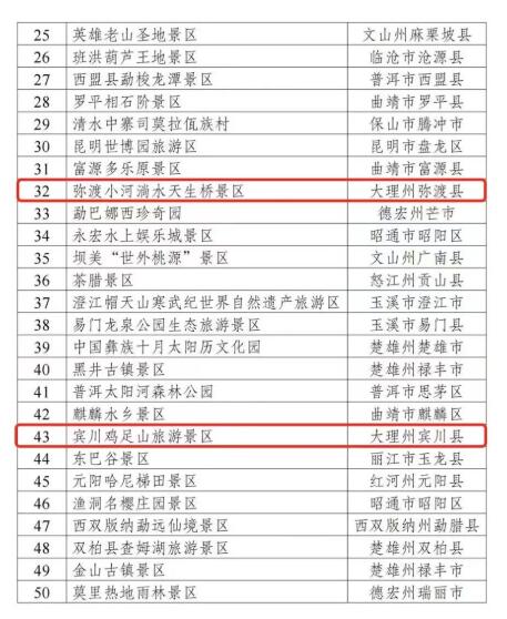 云南省50個(gè)擬獲獎(jiǎng)補(bǔ)景區(qū)名單