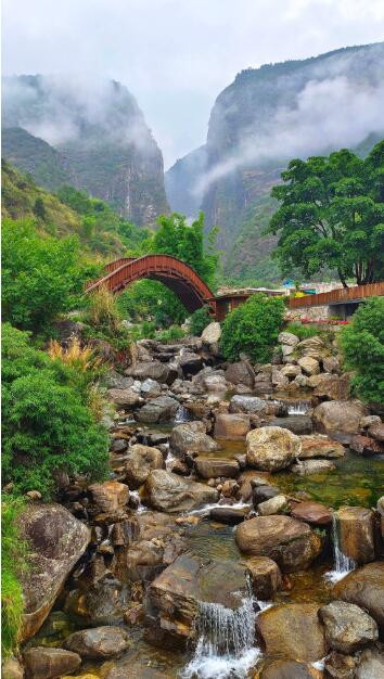 步入石門關(guān),峽谷壁削千仞,關(guān)內(nèi)巨石突兀,怪石嶙峋,一條雪溪從山間穿峽而過,飛瀑層疊;藤蔓攀巖,花奇草異,風(fēng)光秀麗,令人神往。在此可觀賞奇峰異石,俯瞰危崖飛瀑,體驗(yàn)玻璃棧道、七彩瀑布、碧水深潭,仿佛置身仙境一般。