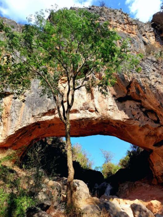 天生橋位于彌渡縣城東南,距城約4公里,整個(gè)風(fēng)景區(qū)由天生橋、東峙壁、西峙壁、龍?zhí)兜葮?gòu)成。