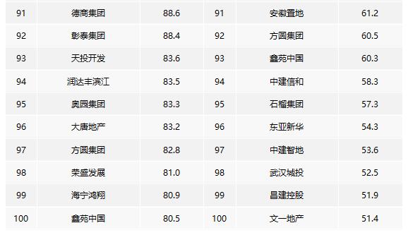 1、業績:TOP100房企銷售總額為39944.0億元,同比下降4.6%