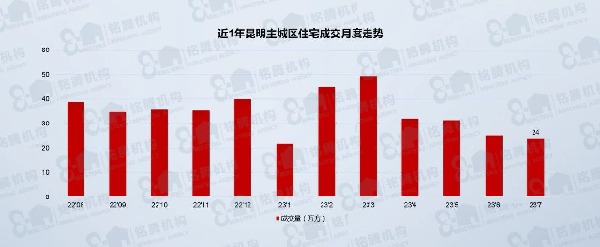 7月份昆明新建住宅成交量是一年來(lái)的第二低(圖源:銘騰機(jī)構(gòu))