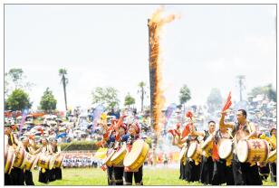 8月10日,2023中國石林國際火把狂歡節開幕儀式在石林縣長湖民族文化活動廣場舉行。