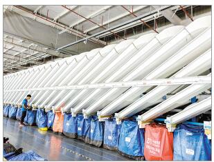 中通快遞云南省管理中心分揀車間。