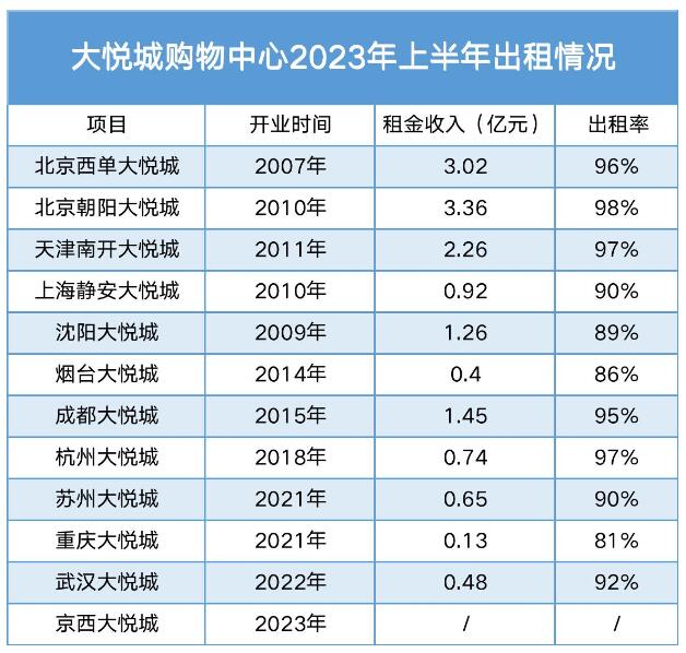 不過,經歷了地產震蕩、消費減弱、疫情洗禮之后,大悅城仍需警惕出租水平下挫,在完善城市布局、提振規模的同時,也需加強經營能力。