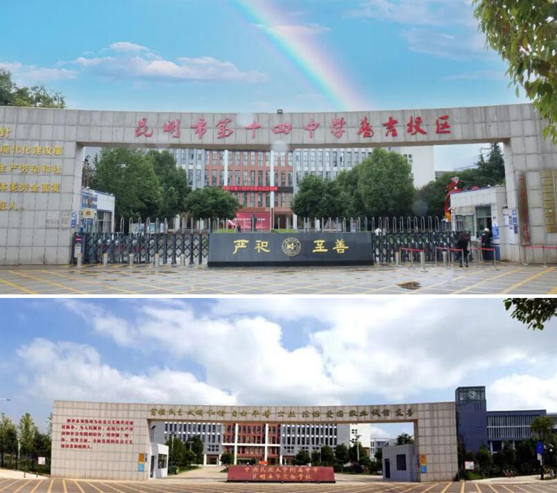 10月8日,昆明市第十四中學(xué)普吉校區(qū)舉行揭牌儀式,學(xué)校門頭已從中央民大附中變成了十四中普吉校區(qū)。十四中教育集團于9月1日揭牌成立,收編了原中央民大附中五華實驗學(xué)校,時隔一個月,十四中已正式接手新校區(qū)的辦學(xué)。