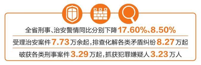 全省公安治安部門聚焦夏季高發治安違法犯罪、公共安全風險隱患、行業場所“黃賭”問題、社會矛盾糾紛、學生校園安全等重點工作,受理治安案件7.73萬余起,排查化解各類矛盾糾紛8.27萬起,有效保障了人民群眾安居樂業、幸福安寧。刑偵部門針對人民群眾反映強烈的突出犯罪活動,持續掀起依法嚴打凌厲攻勢,全省共破獲各類刑事案件3.29萬起,抓獲犯罪嫌疑人3.23萬人。與緬方執法部門加強警務合作,4666名緬北涉我電詐犯罪嫌疑人移交我方,有力回應了人民群眾關切。禁毒部門依托“清源斷流-2023”行動夏季戰役,堅決阻截境外毒品滲透內流,共破獲毒品案件574起,抓獲犯罪嫌疑人645人,繳獲毒品4.4噸,查獲吸毒人員3591人,阻截可制毒化學品959.86噸,抓獲“釘子”逃犯21人,查獲新型毒品及替代物質456.4公斤,切實筑牢云南禁毒安全防線。環食藥偵部門緊盯食品、藥品、知識產權、生態環境、森林草原五大領域治安突出問題,大力推進“昆侖2023”專項行動,共立食藥環和知識產權領域刑事案件2025起,破案2258起,抓獲嫌疑人2298人,全力維護群眾“舌尖上的安全”,守護好云南的綠水青山。