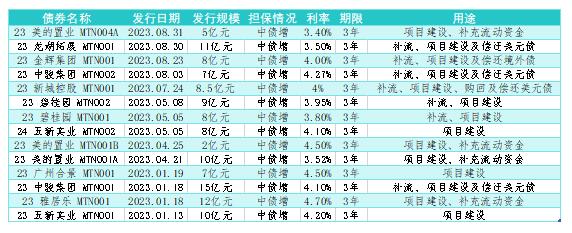 觀點新媒體粗略統計,除卓越商管外,美的置業、龍湖、金輝、新城、碧桂園等房企均在今年完成1-2筆的中債信用增進提供擔保的中期票據發行,累計發行量超120億元。