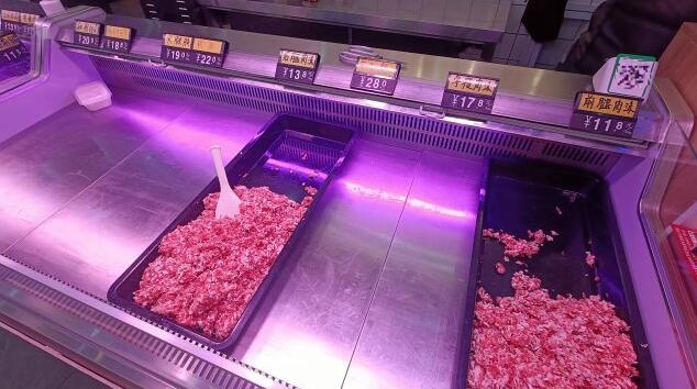 但記者也發現,少數菜市場的生鮮區仍在使用“生鮮燈”。在紫藝新型農貿市場內,一家鮮肉銷售的檔口仍在使用“生鮮燈”。“你知道這種燈光12月1日起就禁用了嗎?”記者詢問檔口經營者時,對方表示“知道”。