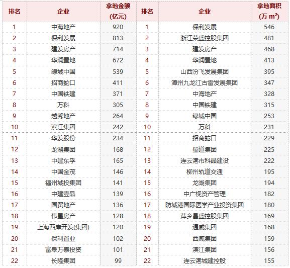 拿地金額為權益拿地總金額,拿地面積為權益拿地規劃建筑面積