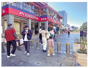 隔離樁擋道的情況市民王女士也深有體會,王女士說,她偶爾會用嬰兒車推著孩子來金馬碧雞廣場玩,但每次進出都很頭疼。“隔離樁之間的距離太窄了,嬰兒車根本過不去,只能連車帶娃抬起來,如果走旁邊的非機動車道,則是逆行,十分危險。金馬碧雞坊作為昆明的一個標志性景點,周邊還有醫院、商圈,每天人流量很大,我覺得可以在兩邊的出入口設置一個無障礙通道,方便大家通行。”