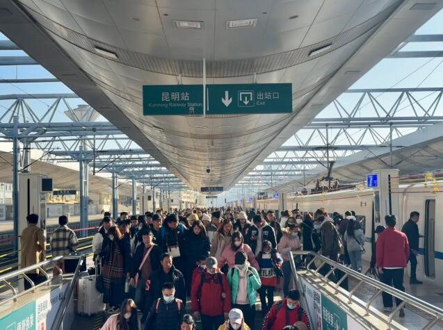 12月31日,春城晚報(bào)-開屏新聞?dòng)浾邚闹袊F路昆明局集團(tuán)有限公司(下稱“國鐵昆明局”)獲悉,元旦小長假首日,云南鐵路迎來客流高峰,旅客發(fā)送量達(dá)36.7萬人次,較去年同期增長169.1%。