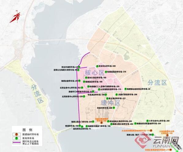 據統計,昆明海埂大壩人流量日均2.9萬人次,觀鷗高峰期間超過了8萬人次,壩片區現有6000個停車泊位,多數位于核心區域外,動靜態交通供需矛盾突出。