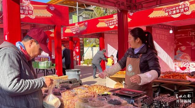 1月13日,“2024年世博園花漾年貨街”在昆明世博園花園大道開街,以年貨市集、特色美食、民俗非遺和互動游戲為特色的年貨街吸引了眾多游客和市民。