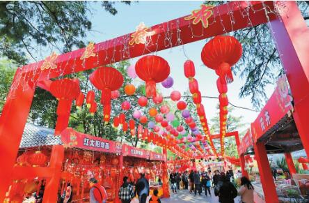 春節臨近,春城街頭年味漸濃,春節年貨街也陸續開街迎客。翠湖年貨街上,鬧新春的節日氛圍格外濃厚。迎接龍年春節的燈籠、春聯等傳統節慶飾品以及香腸、火腿等食品琳瑯滿目,吸引了眾多市民前來選購。 本報記者 楊崢 攝