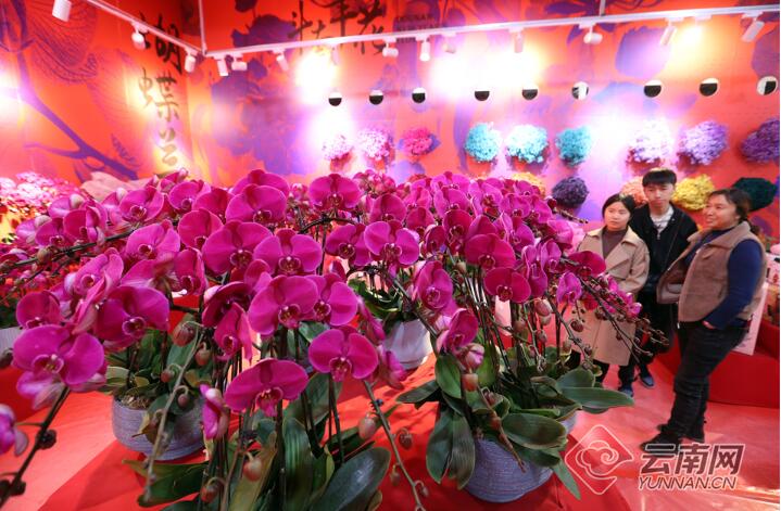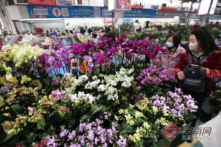 1月15日,隨著春節的臨近,昆明斗南花卉市場內熱鬧非凡。五彩繽紛、爭奇斗艷的年宵花成為市場主角,整個市場人來人往到處都是喜慶、祥和的氛圍。大花蕙蘭、蝴蝶蘭、北美冬青等多種年宵花供需兩旺。