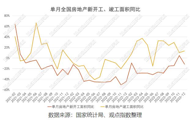 據了解,房地產新開工面積下跌至2006年以來的最低水平,而竣工面積的持續提升則表明“保交樓”工作取得較好成效。據住建部披露,保交樓專項借款項目總體復工率達到99.9%;截至2023年末,350萬套保交樓項目交付率已超86%。