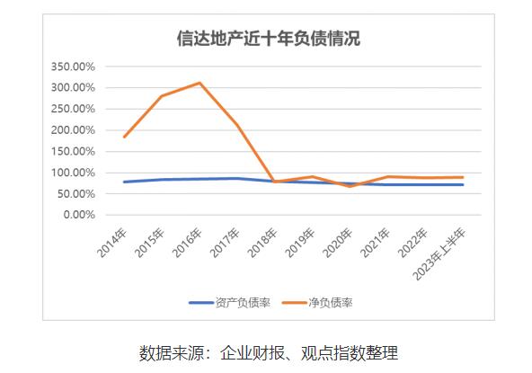 觀點新媒體了解到,在2015年2016年搶地期間,信達地產凈負債率一度被推高至311.34%。