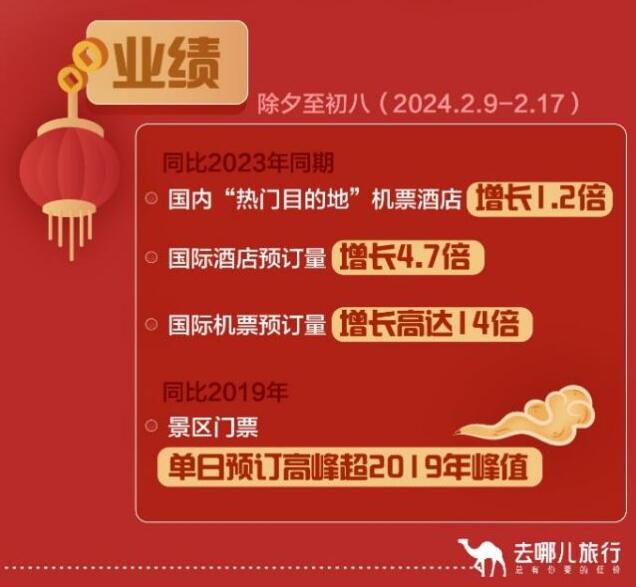 去哪兒數(shù)據(jù)顯示,初一至初七出行的機票預訂量同比增長1.23倍。7成游客選擇在大年初二集中出發(fā),與家人一同開始旅游;初一至初五是春節(jié)旅游的出行高峰。