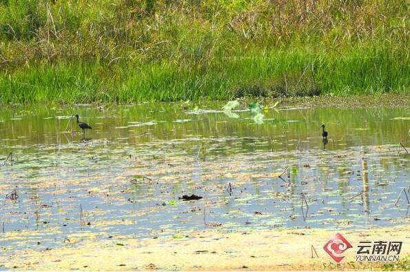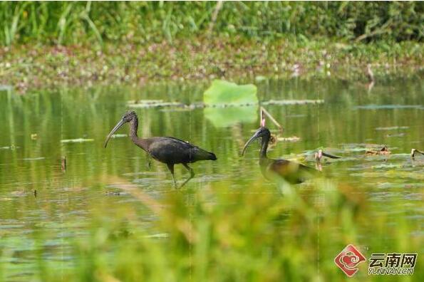 近日,有攝影愛好者在臨滄市耿馬傣族佤族自治縣孟定鎮一魚塘拍到2只國家一級重點保護野生動物——彩鹮。