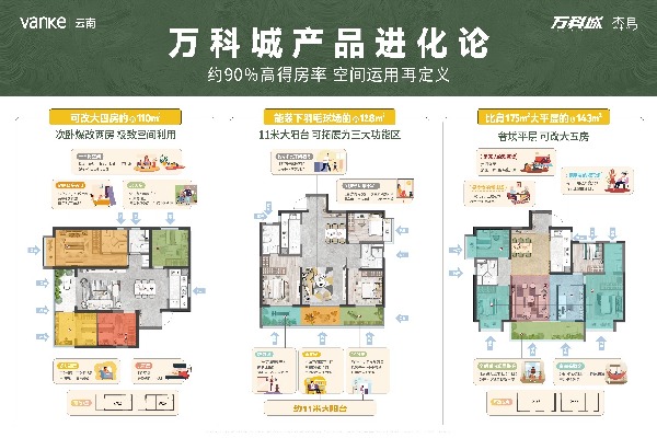 約110㎡的戶型,竟然可以做到大四房!將次臥可爆改兩房,彰顯極致空間設計;約128㎡的戶型,竟然做到了與羽毛球場同尺寸的11米大陽臺,更能拓展為三大功能區;約143㎡,竟然可爆改大五房,奢境平層,闊境橫廳,比肩市場上175㎡大平層。從空間布局到功能改造,無論是多一室的改造、還是多功能陽臺的設計,萬科城·森島,最終都是為了滿足客戶個性化與社交化的需求、生活感與品質感的追求。