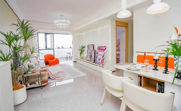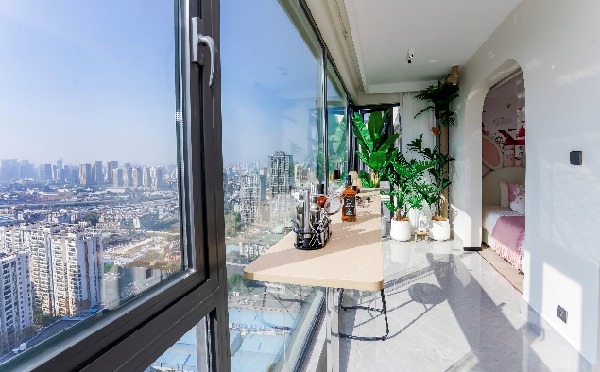 景觀、生活雙陽臺(tái),新晉“解憂”生活新場(chǎng)域,致敬詩和遠(yuǎn)方。大面積白墻+透明玻璃,配以純白色窗紗透光不透影,風(fēng)吹過的那一瞬間,掀起陣陣溫柔。