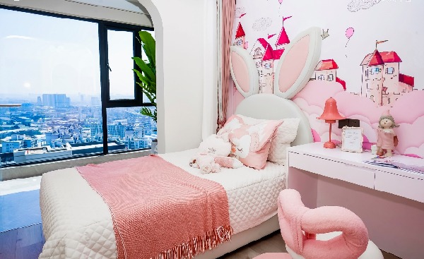 夢(mèng)幻兒童房,延續(xù)奶茶色,點(diǎn)綴粉紅色浪漫,治愈系色彩,為孩子打造不可復(fù)制的童夢(mèng)空間。
