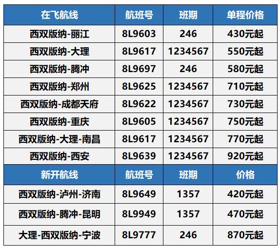 同時(shí),祥鵬航空還執(zhí)飛西雙版納—成都、西雙版納—重慶、西雙版納—西安、西雙版納—鄭州、西雙版納—大理—南昌等航線,部分精品短途航線1.5小時(shí)內(nèi)即可到達(dá)。