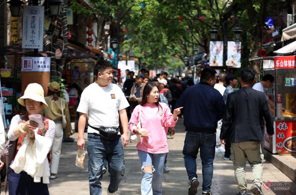 3月26日,游客在陸軍講武堂、昆明老街參觀游玩