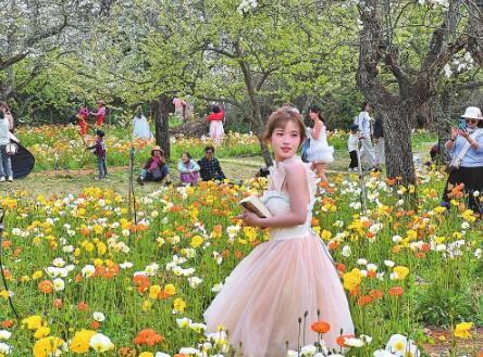 近日,位于西山區的名花谷生態園花開成海,虞美人則是這片花海中最耀眼的明星。置身黃色、橙色和白色的虞美人花海中,讓人賞心悅目。本報記者 黨曉培 攝