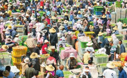 眼下正值荷蘭豆集中上市季節。在昆明市晉寧區六街鎮大莊村荷蘭豆交易市場,經過現場分揀和采購分銷的荷蘭豆被及時運往北京、上海、廣州、深圳等城市。目前,該市場日交易量約100噸,收購均價每公斤8至9元,日交易額80萬元至90萬元。