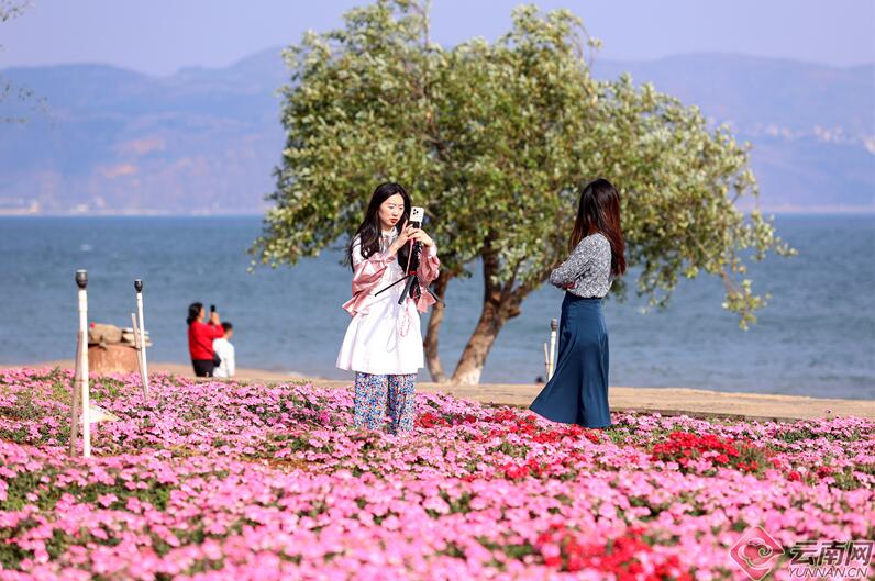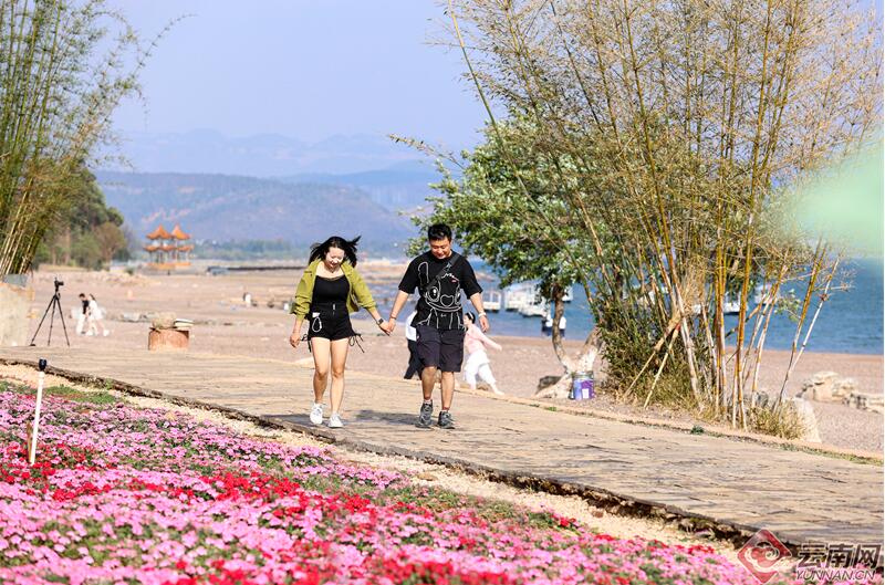 陽春四月,撫仙湖琉璃萬頃、波光粼粼,湖濱綠樹成蔭、花海芬芳。位于撫仙湖北岸的廣龍撫海灣濕地公園內植被茂盛,薰衣草、石竹花等花田爭奇斗艷,市民游客漫步在旖旎春光中,盡享湖濱生態之美。
